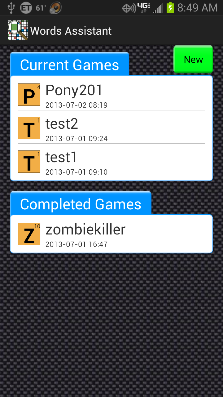 Words Assistant stores all of your games, so no need to constantly create boards. Just add your opponent's last play and your new tiles, and you're ready to click "Find Best" to find the best word for your next turn.